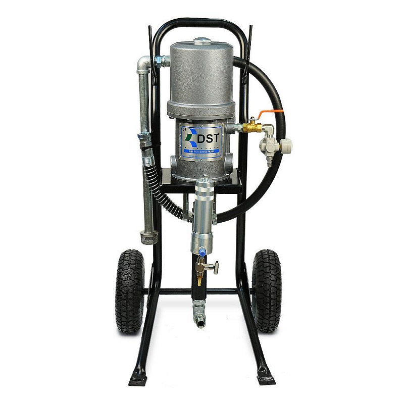 Поршневой безвоздушный окрасочный аппарат, работающий от сжатого воздуха из компрессора. Окрасочный аппарат предназначен для промышленного применения на заводах по производству металлических конструкций, вагонных заводах, оконных и дверных фабриках, на производствах, где требуется массовая покраска однотипных изделий одной и той же краской. Окрасочный аппарат может работать круглосуточно, он охлаждается от краски. Аппарат может распылять безвоздушным способом краски на водной основе и краски на растворителях. С жидкими красками он может работать на два маляра одновременно.